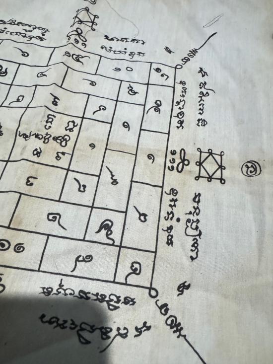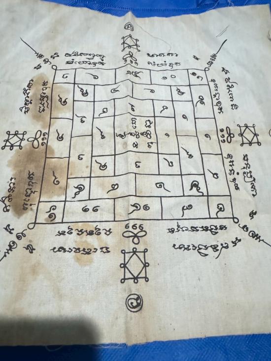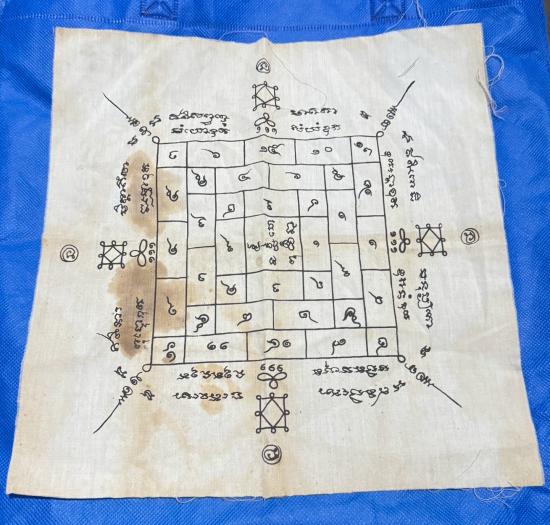 ผ้ายันต์โสฬสมหามงคล เก่าไม่ทราบที กว้าง /ยาว 28 ซม |