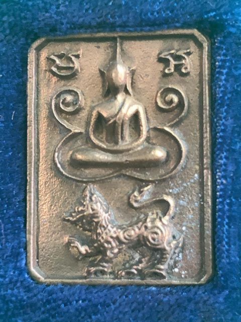 เหรียญหล่อพระพุทธเจ้าประทับสิงห์ หลังรูปเหมือน(สิงห์ ๓) ๒๕๓๕