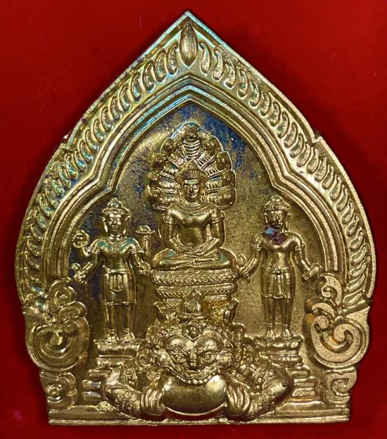 วัดใจ เคาะเดียว เหรียญตรีกาย พระรัตนตรัยมหายาน "พระนาคปรกสุริยัน-จันทรา"(พระนาคปรก,พระนารายณ์,พระราหู) หลังพระพิฆเนศ เจ้าคุณธงชัย วัดไตรมิตรฯ ปี49 พิมพ์ใหญ่ เนื้อทองทิพย์