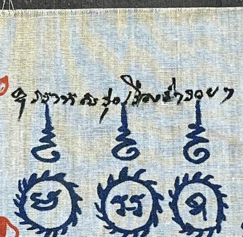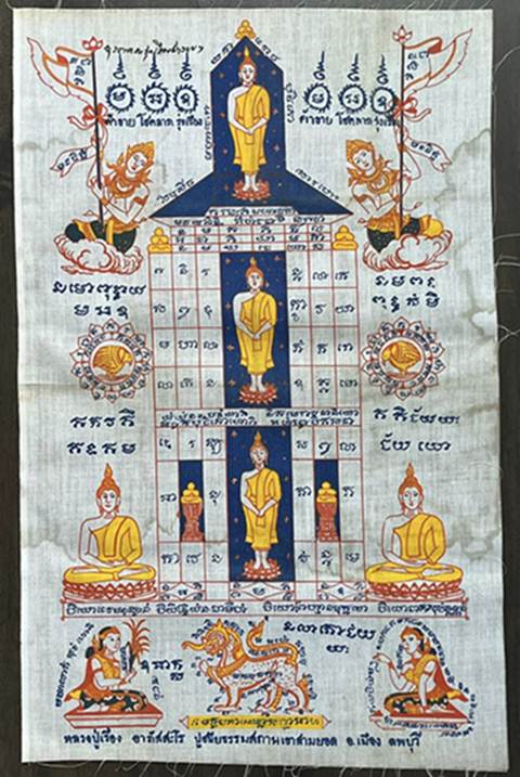 ผ้ายันต์เมตตาค้าขาย รุ่นแรก หลวงปู่เรือง วัดเขาสามยอด ปี 39 ขนาด 14.5 x 23 นิ้ว สภาพตามรูป เตาะเดียวแดงครับ
