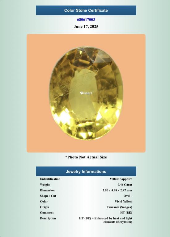 พลอยบุษราคัม (น้ำหนัก 0.44 Ct.) ***พร้อมบัตรรับรองจากจีเพชร*** |
