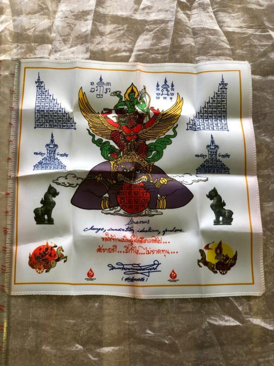 วัดใจ 200.- ผ้ายันต์พระนารายณ์ทรงครุฑประทับพระราหู ผืนใหญ่ เจ้าคุณธงชัย วัดไตรมิตร กทม. |