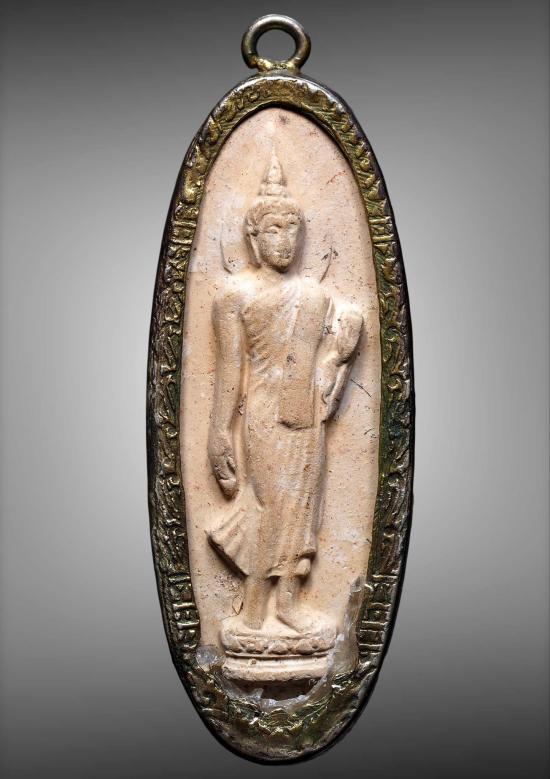 พระลีลา 25 พุทธศตวรรษ เนื้อดิน เลี่ยมเดิมจากวัด