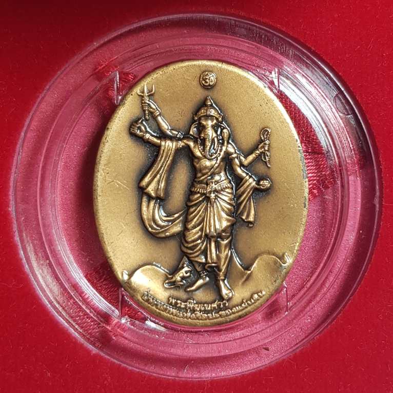 "วัดใจ" เหรียญหล่อพระพิฆเนศวร ปางมหาเทพแห่งศิลปะของแผ่นดิน รุ่นเฉลิมพระเกียรติ 80 พรรษา จัดสร้างโดย บ.เวิร์คพอยต์ (เลขเหรียญ 9999) พิธีใหญ่ พ.ศ.2550 |