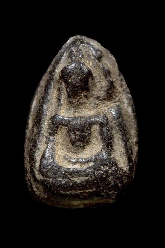 พระเม็ดน้อยหน่า หลังยันต์อุ เนื้อผงใบลาน ไม่ทราบที่ พระบ้านเหมาๆมา |