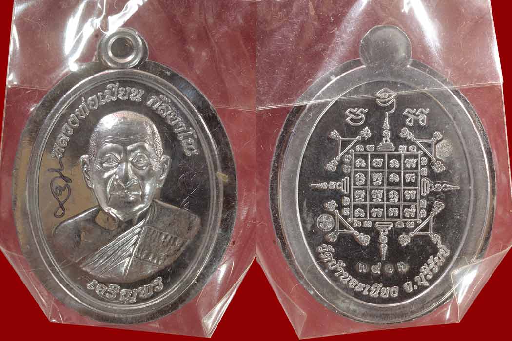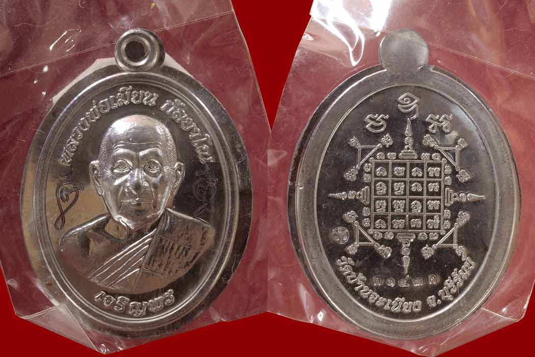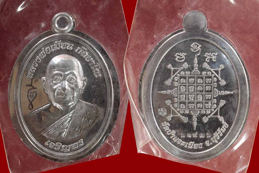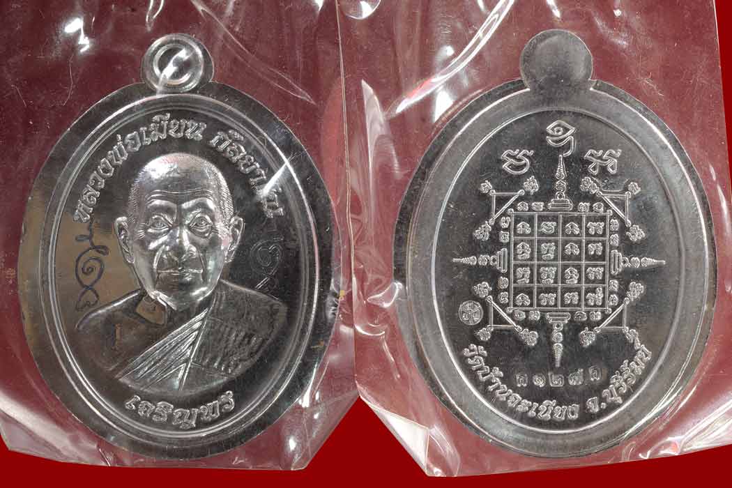 วัดใจ 5 เหรียญ เหรียญเจริญพรล่าง หลวงพ่อเมียน วัดบ้านจะเนียง เนื้อตะกั่วไม่ตัดปีก มีเลข มีโค๊ต ไม่มีกล่อง เพราะหากล่องไม่เจอน่ะครับ สร้าง 200 เหรียญ |