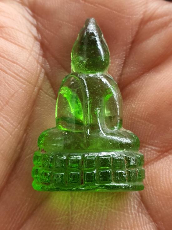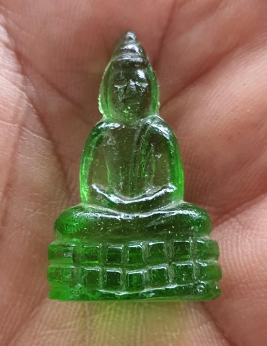 วัดใจพระแก้วมรกต หลวงพ่อเจียง วัดเจริญสุขาราม รุ่น 3 เนื้อแก้ว(สีเขียว) ปี2500 |