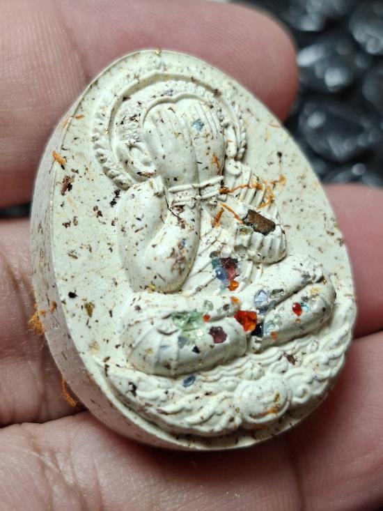 รายการที่ 5 เนื้อผงเกษร 108 โรยจีวร ฝังพลอยเสกหลวงปู่ เลขสวย 222 จัดสร้าง 1,999 องค์