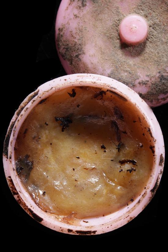 เคาะดียวแดง....ตลับสีผึ้งเก่า มีสีผึ้งสีออกเหลืองด้านในเกือบเต็มตลับ ไม่ทราบที่ |