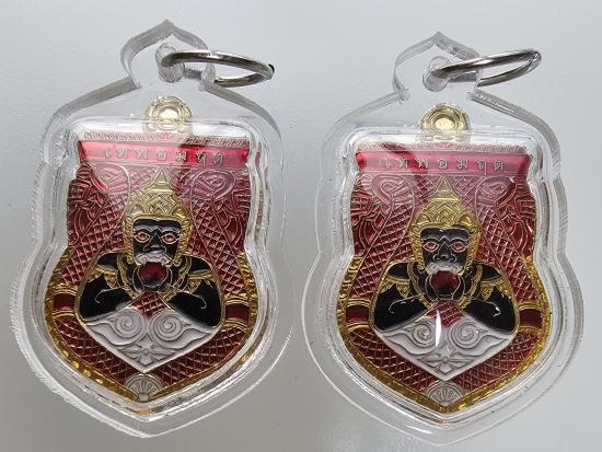 รับ 2 เหรียญ เหรียญพระราหูอมจันทร์ หลวงปู่ศิลา เมตตาอธิษฐานจิต รุ่นเหนือดวง เนื้อทองฝาบาตรลงยา |