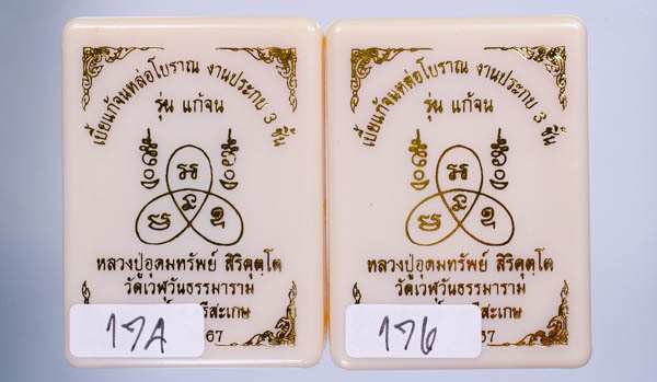 *ทีเดียว 2 ลูก 2 เนื้อ หลวงปู่มหาศิลาร่วมเศก เบี้ยแก้จนหล่อโบราณ ประกบ3ชิ้น อุดมวลสาร หลวงปู่อุดมทรัพย์ สิริคุตโต วัดเวฬุวันธรรมาราม สวยมาก เคาะเดียวแดง* |