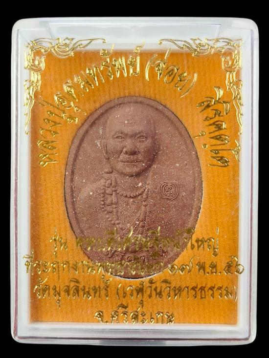 พระผงรุ่นแรก หลวงปู่อุดมทรัพย์(จ่อย) สิริคุตโต ปี 2556 เนื้อชานหมาก รุ่นคหบดีเศรษฐีหน้าใหญ่ พร้อมกล่องเดิม |