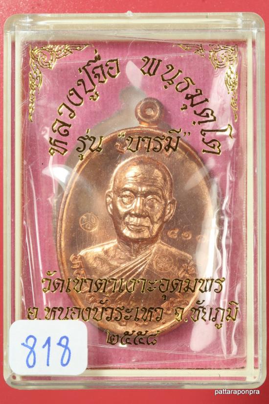 เหรียญครึ่งองค์ หลวงปู่จื่อ รุ่นบารมี ปี 2558 เนื้อทองแดง หมายเลข 818 |