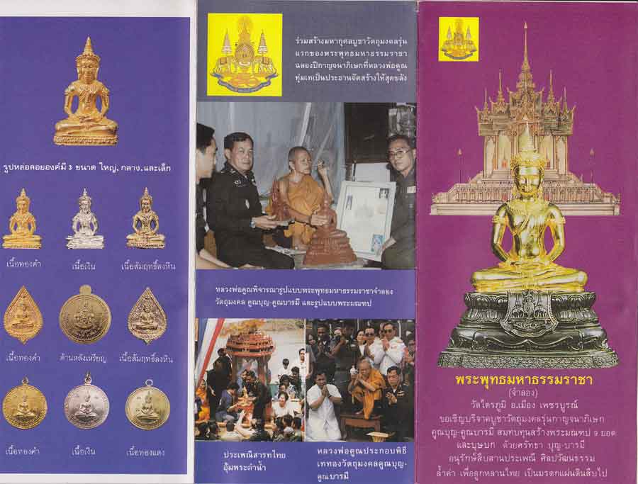 รูปหล่อลอยองค์ พระพุทธมหาธรรมราชา รุ่นกาญจนภิเษก คูณบุญ-คูณบารมี ปี 2539 (หลวงพ่อคูณเป็นประธานร่วมปลุกเสก) สร้างมณฑป วัดไตรภูมิ จ.เพชรบูรณ์ |