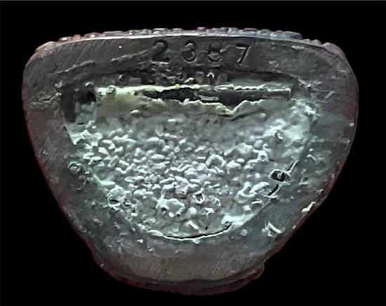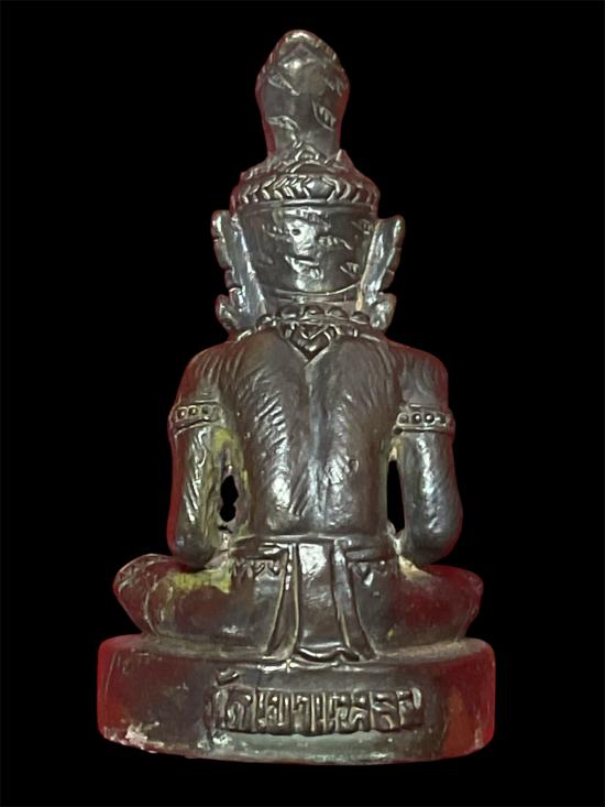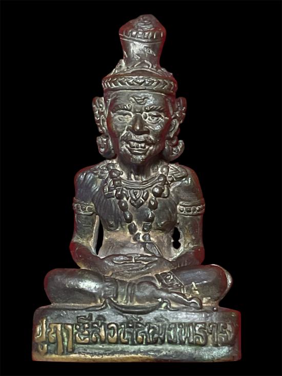 รูปหล่อปู่ฤาษีสิงห์สมิงพราย รุ่นสอง หลวงปู่กาหลง เขี้ยวแก้ว วัดเขาแหลม หมายเลข 2387 เนื้อนวโลหะ ใต้ฐานอุดแร่ ฝังตะกรุดเงิน ออกปี 2550 |