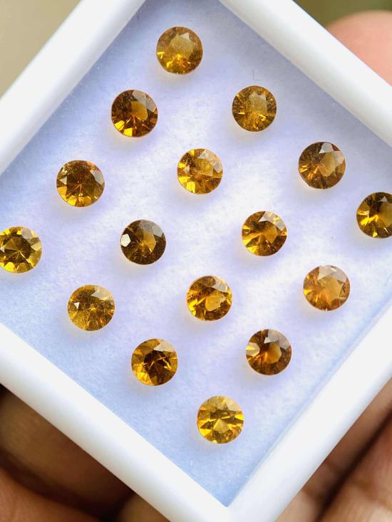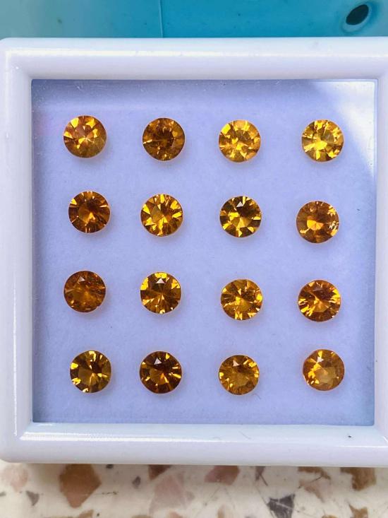 พลอยซิทริน สีเข้มเกรด TOP ขนาดประมาณ 4 มิล 16 เม็ด 3.20 กะรัต พลอยธรรมชาติดิบ ไม่ผ่านการปรับปรุงคุณภาพสี |