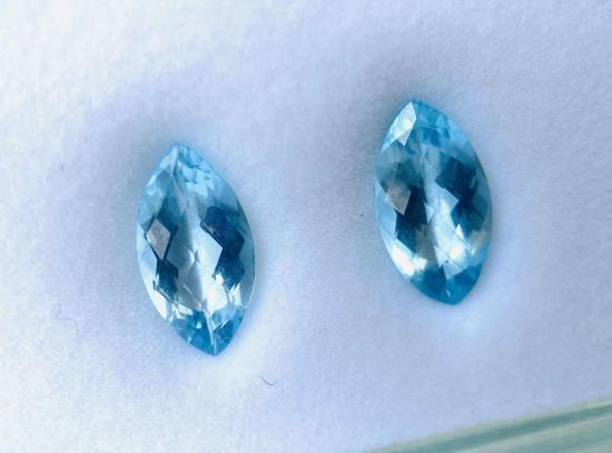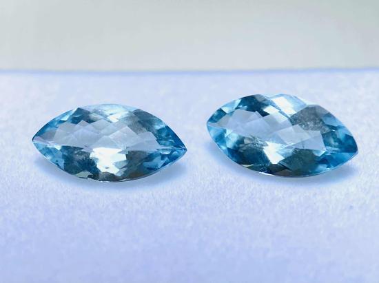 บลูโทแพส (Natural Blue Topaz) 6,3 CT ทรงมาคี ขนาด 7X13 MM