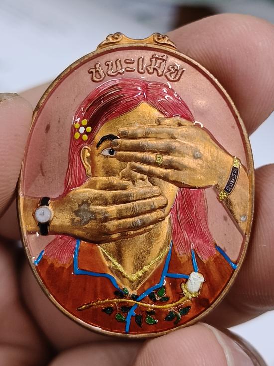 เหรียญรุ่นแรก ชนะเมีย เนื้อทองแดงผิวไฟ ลงยาพื้นเจลเรืองแสงฟ้า เสื้อส้ม ผมชมพู เลข 93 |