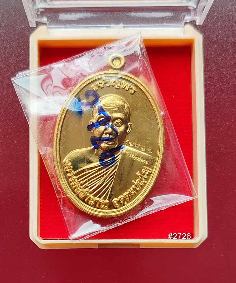 เหรียญเจริญพร หลวงพ่อชำนาญ วัดชินวราราม จ.ปทุมธานี พิมพ์เครึ่งองค์ หลังพระพรหม (นิยม) เนื้อทองทิพย์(ผิวกระจก) ปี58 ผิวเดิม ในซีลเดิม นอนกล่องเดิม หมายเลข2726
