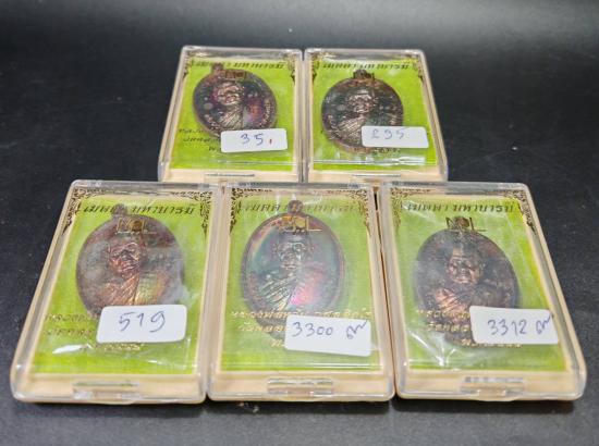 รก.แจกในพิธี เนื้อสัตตะ พิมพ์ห่มเฉียง 5 เหรียญ เลข No.35-๙-295-๙-519-๙-3300-๙-3312-๙ ซิลเดิมกล่องเดิมๆ