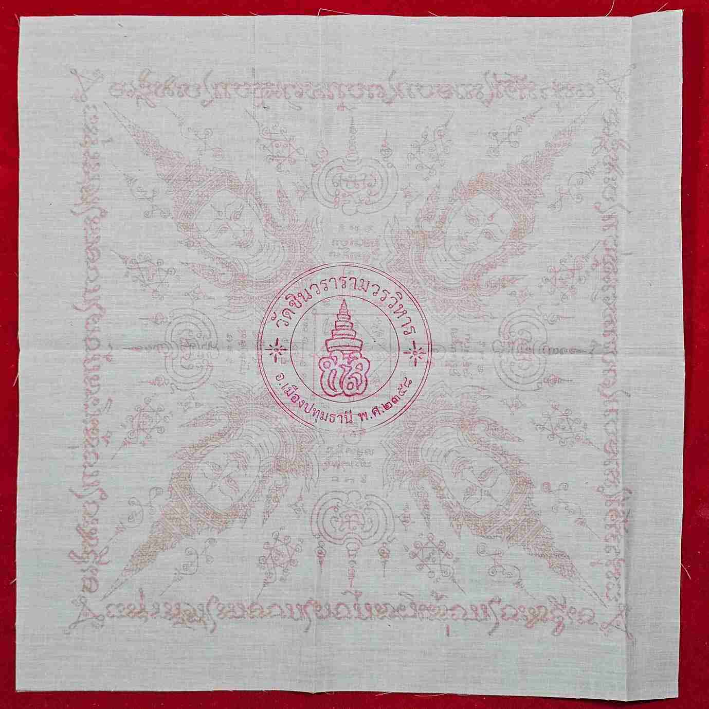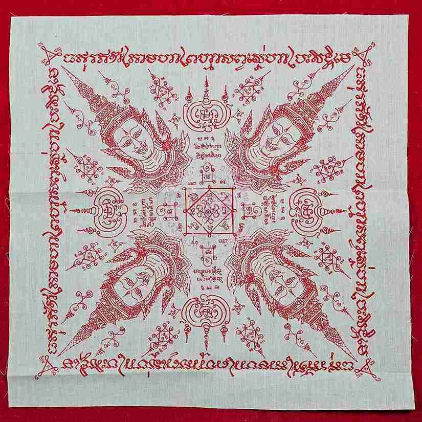 ผ้ายันต์พรหมสี่หน้า หลวงพ่อชำนาญ วัดชินวราราม ประทับตราวัด กว้างยาว 12 * 12 นิ้ว |