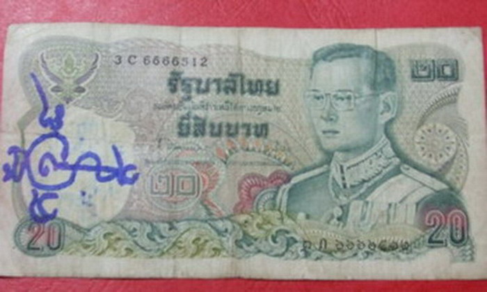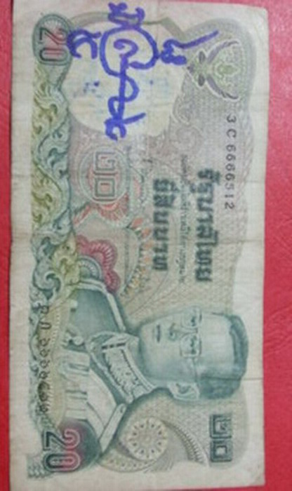 หลวงปู่ลงยันต์บนแบ็งค์ ด้วยปากกาเคมี ทั้งสองด้านครับ |