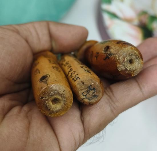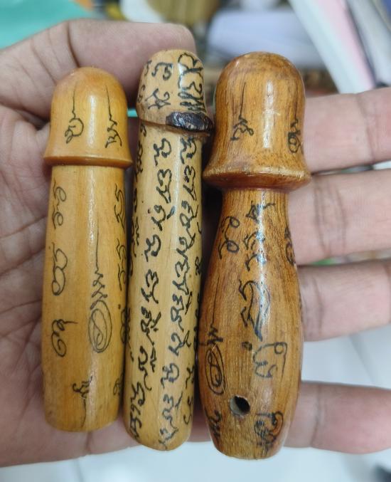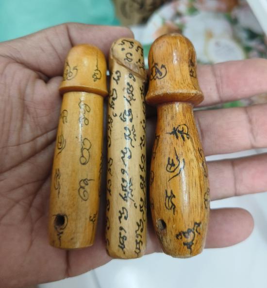 ท่านปลัดไม้แกะจารอักขระเต็มสูตร ไม่รู้ที่ 3 ตัววัดใจ 100 แดงครับ |