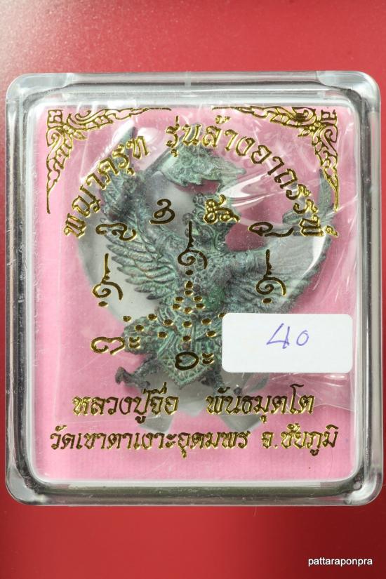 พญาครุฑ หลวงปู่จื่อ รุ่นล้างอาถรรพ์ เนื้อสนิมเขียว หมายเลข 40 |