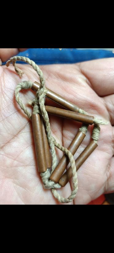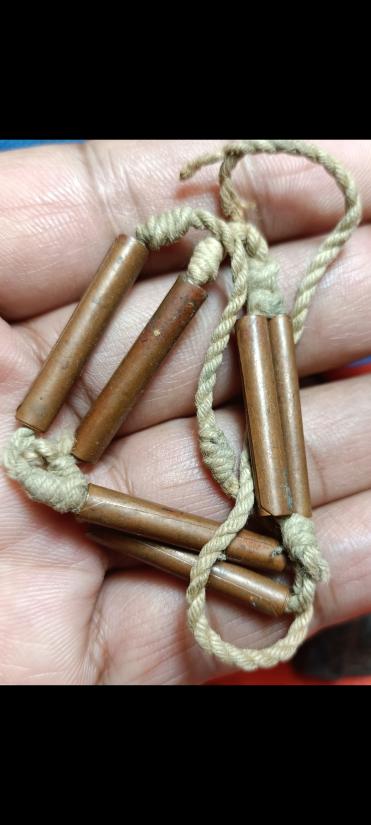 ตะกรุดยาว 1 นิ้ว 3 คู่ พร้อมด้ายเก่า ไม่ทราบที่ วัดใจครับ |