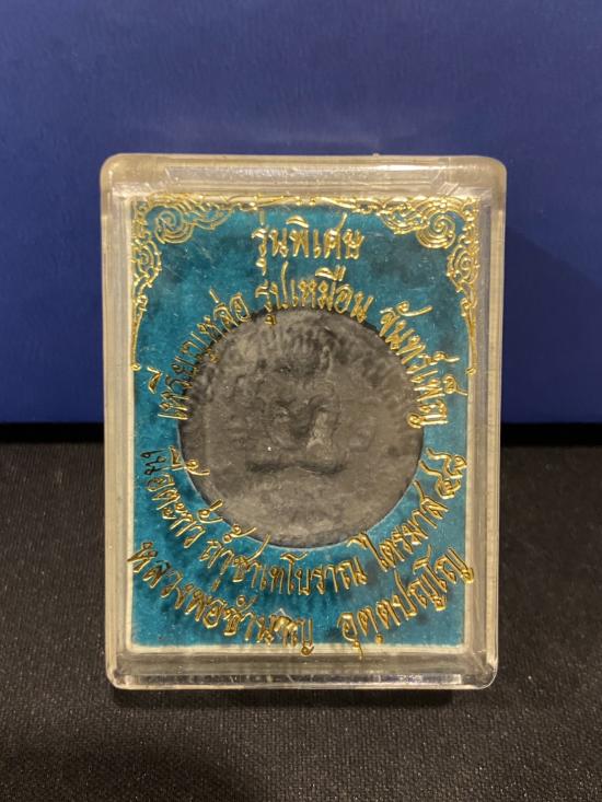 เหรียญหล่อ รูปเหมือนจันทร์เพ็ญ หลวงพ่อชำนาญ วัดบางกฎีทอง เนื้อตะกั่วถ้ำชาเทโบราณ เข้มขลังน่าบูชา กล่องเดิม |