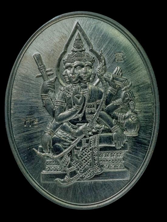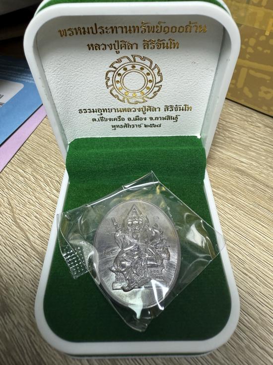 เหรียญพรหมประทานทรัพย์100ล้าน หลวงปู่ศิลา เนื้อเหล็กเปียกพระธาตุพนม แช่น้ำมันว่าน เลข 115 สวยๆครับ (สร้างน้อย 599เหรียญ)