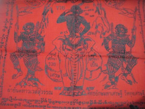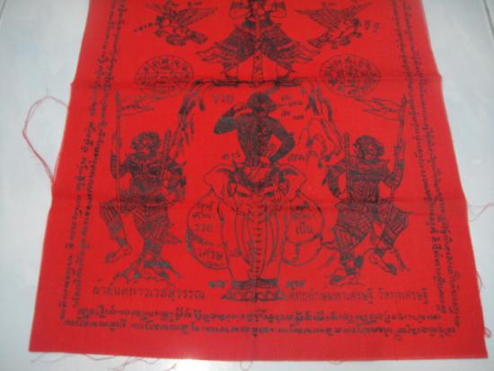 วัดใจเคาะเดียว........150.......ผ้ายันต์ ท้าวเวสสุวรรณ คัทธยักษ์มหาเศรษฐี หลวงพ่อเณร วัดทุ่งเศรษฐี กันผี กันคุณไสย กันเสนียดจัญไร ป้องกันสิ่งไม่ดีต่างๆสวย ขนาดประมาณ 11 x 15 นิ้ว |