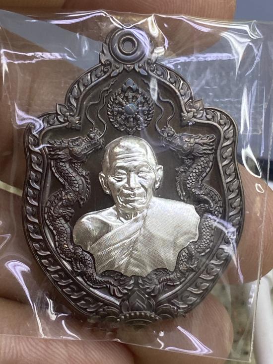 หลวงปู่มหาศิลา อายุวัฒนมงคล 81 เหรียญมังกร คู่ เนื้อนวะหน้ากากเงิน เลขโค๊ต 1037 กล่องสวย จมูกสมบูรณ์ ราคาจอง
