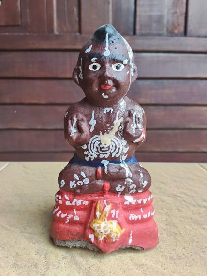 กุมารหลวงปู่แย้ม เนื้อดิน พิมพ์กลาง สีโอ๊ค สร้างน้อย ตอกโค๊ต ตัว ย รุ่นสมบรูณ์ทรัพย์