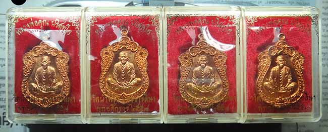 หลวงพ่อคูณ เหรียญเสมาประทานพร เนื้อทองแดงผิวไฟ รวม 4 เหรียญ พร้อมกล่องเดิม