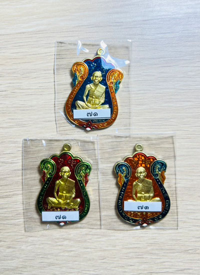 วัดใจ เหรียญเลื่อนสมณศักดิ์ 47 หลวงพ่อคูณ วัดบ้านไร่ จ.นครราชสีมา เนื้อทองทิพย์ลงยา.3 เหรียญ เลข71 |