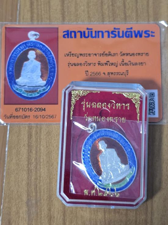เหรียญฉลองวิหาร อาจารย์ดิเรก วัดหนองทราย เนื้อเงินลงยา