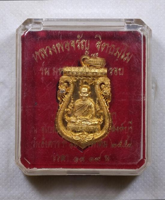 เหรียญเสมาฉลุ รุ่นมหามงคล 7 รอบ หลวงพ่อจรัญ วัดอัมพวัน จ.สิงห์บุรี ปี 2554 หมายเลข 1885 มีกล่อง แดงเคาะแรก |