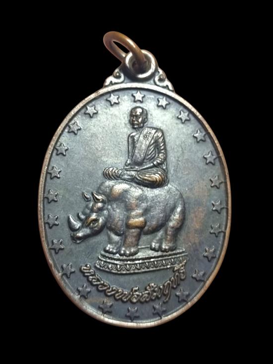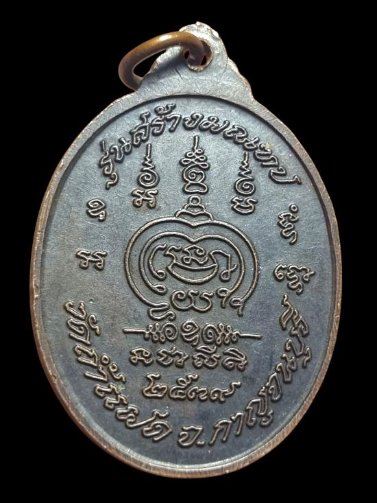 เหรียญ หลวงพ่อสัมฤทธิ์ วัดถ้ำแฝด กาญจนบุรี เนื้อทองแดงรมดำ สร้างมณฑป ปี ๒๕๓๙ |