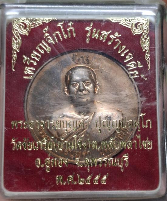 เหรียญจิ๊กโก๋ หลวงพ่อบุญค้ำ วัดชัยเภรีย์ จ.สุพรรณบุรี เนื้อทองแดง กล่องเดิม |
