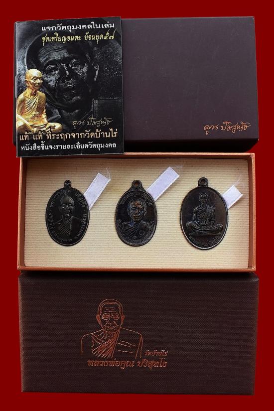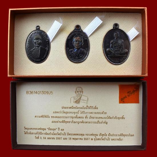 เหรียญหลวงพ่อคูณ ย้อนยุคปี 12 , 17 , 19 เนื้อทองแดง ปี 2557 ชุดกรรมการพิเศษ มีจีวรหลวงพ่อ (คูณ ปริสุทโธ) หลวงพ่อคูณ ปริสุทโธ เป็นประธานพิธีพุทธาภิเษก วันที่ 3 , 24 เมษา 2557 และ 18พ.ค. 2557 ณ อุโบสถวัดบ้านไร่ จ.นครราชสีมา สภาพเก็บเหรียญสวยสมบูรณ์ พร้อมกล่องครบชุด 3 เหรียญ สภาพพระตามรูปที่ลงทุกประการ