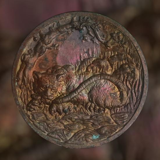 เหรียญ { พญาเสือนอนกิน รุ่นสอง } พระอาจารย์ประสูติ วัดถ้ำพระพุทธโกษีย์ " วัดในเตา " จ.ตรัง |