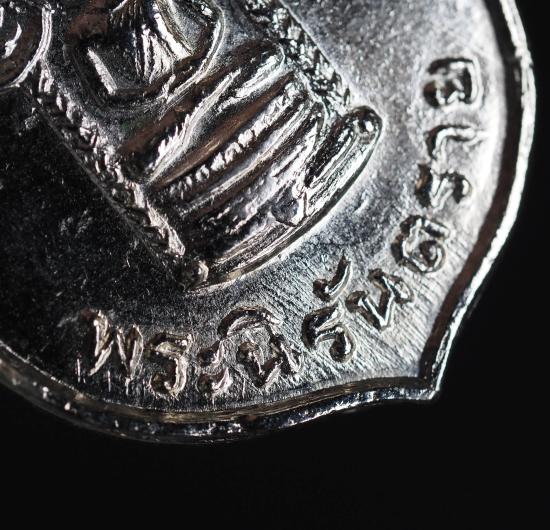 ด้านหลังเหรียญระบุว่า "ที่ระลึกในการเสด็จ วางศิลาฤกษ์ อาคารเรียนศูนย์การศึกษาคณะสงฆ์ปราจีนบุรี"สุ จุิ ปุ ริ อะ สัง วิ สุ โล ปุ สะ พุ พะ”