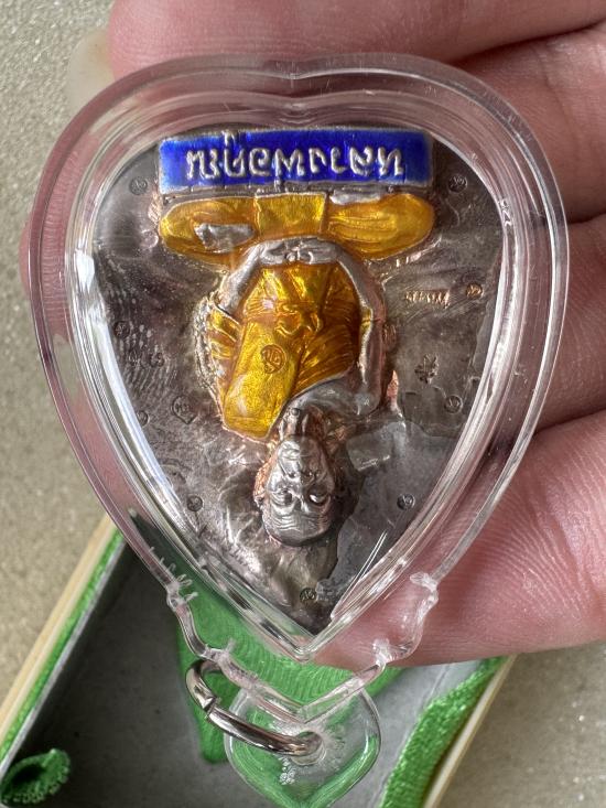 รูปเหมือนปั๊มใบโพธิ์ รุ่นอายุยืน ปี2553 เนื้อเงิน ลงยา no.32 มีกล่อง