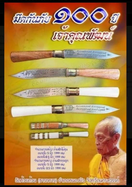 มีดหมอกันภัย 100 ปีหลวงพ่อพัฒน์ วัดห้วยด้วน นครสวรรค์ เลข๑๗๘ ยาวรวม 10 นิ้ว สร้าง๑๙๙๙ เล่ม สวยสภาพเดิมๆไม่แพงครับ |