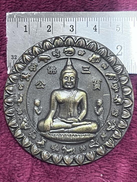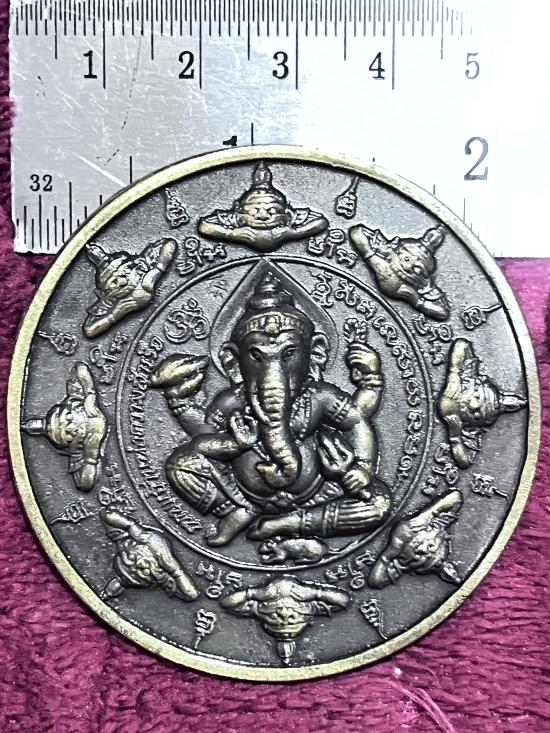 เหรียญหล่อหลวงพ่อโต หลังพระพิฆเนศ รุ่นโตสัมฤทธิ์ผล พ.ศ.2550 วัดพนัญเชิงวรวิหาร จ.พระนครศรีอยุธยา ขนาด 5.5 ซ.ม. มีโค๊ต ซ้ายเหนือพระพิฆเนศร |