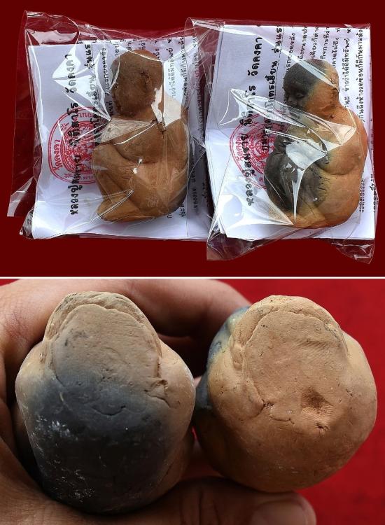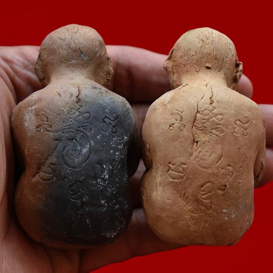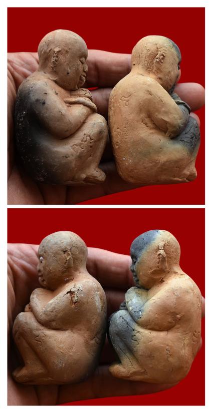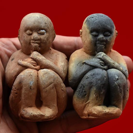 ชุด 2 องค์...กุมารดูดรกมหาโภคทรัพย์โคตรเฮี้ยน รุ่นแรก ปี 2557 เนื้อดินอาถรรพณ์ หลังยันต์มหาเศรษฐี หลวงปู่สมชาย วัดคงคา จ.กาญจนบุรี พร้อมซองใบฝอยเดิมจากวัด สภาพพระตามรูปที่ลงทุกประการ (ขนาดประมาณ 8 x 4 ซม.)