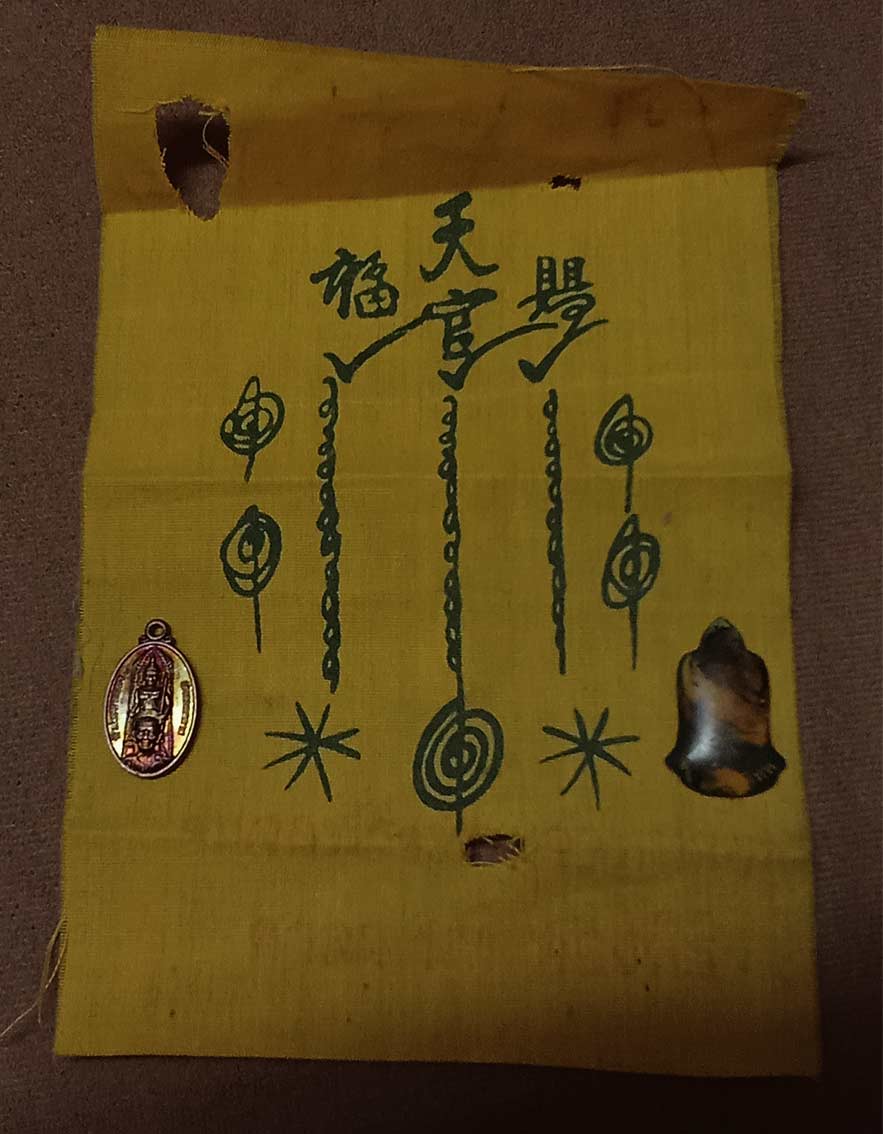 ***วัดใจ 10.-*** ผ้ายันต์ฟ้าประทานพร 1 กา + เหรียญเจ้าพ่อปงเถ่ากง เป็นอาจารย์ของ เซียแป๊ะโรงสี วัดศาลเจ้า จ.ปทุมธานี (พิธีใหญ่) + พุทธคุณประสบการณ์เยี่ยม จบได้เท่าไรเท่านั้นครับ (แถมฟรีล็อกเก็ตไม่รู ้ |