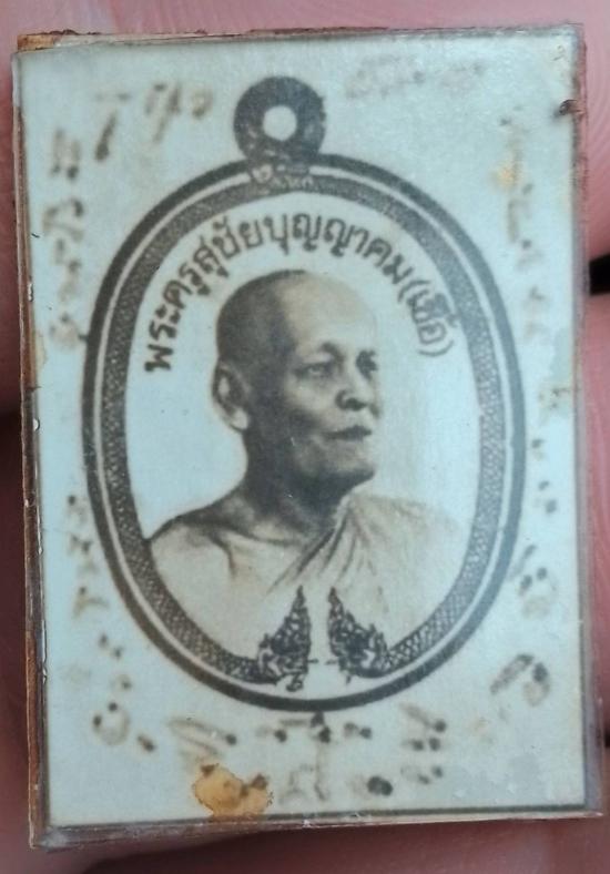 รูปถ่ายขนาดห้อยคอ รูปต้นแบบเหรียญพญานาค หลวงพ่อเชื้อ วัดใหม่ บำเพ็ญบุญ (มีจารมือรอบๆภาพ ) |
