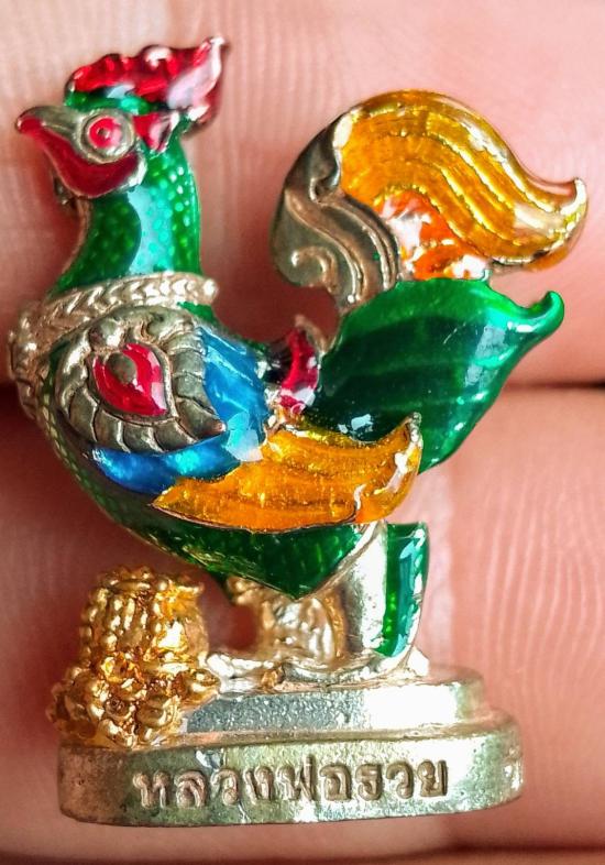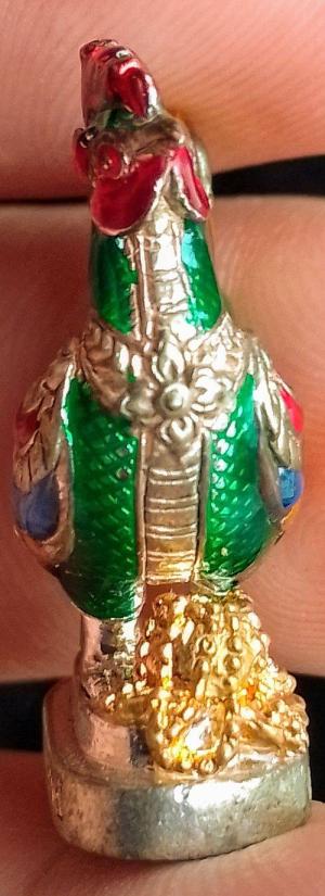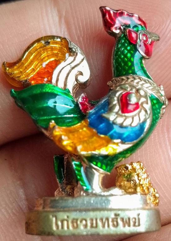 ไก่รวยทรัพย์ ชุบกะไหล่เงินลงยา7สี ฝังตะกรุดเงิน หลวงพ่อรวย วัดตะโก ออกที่วัดท่าช้าง จ.อ่างทอง หมายเลข 9140 |